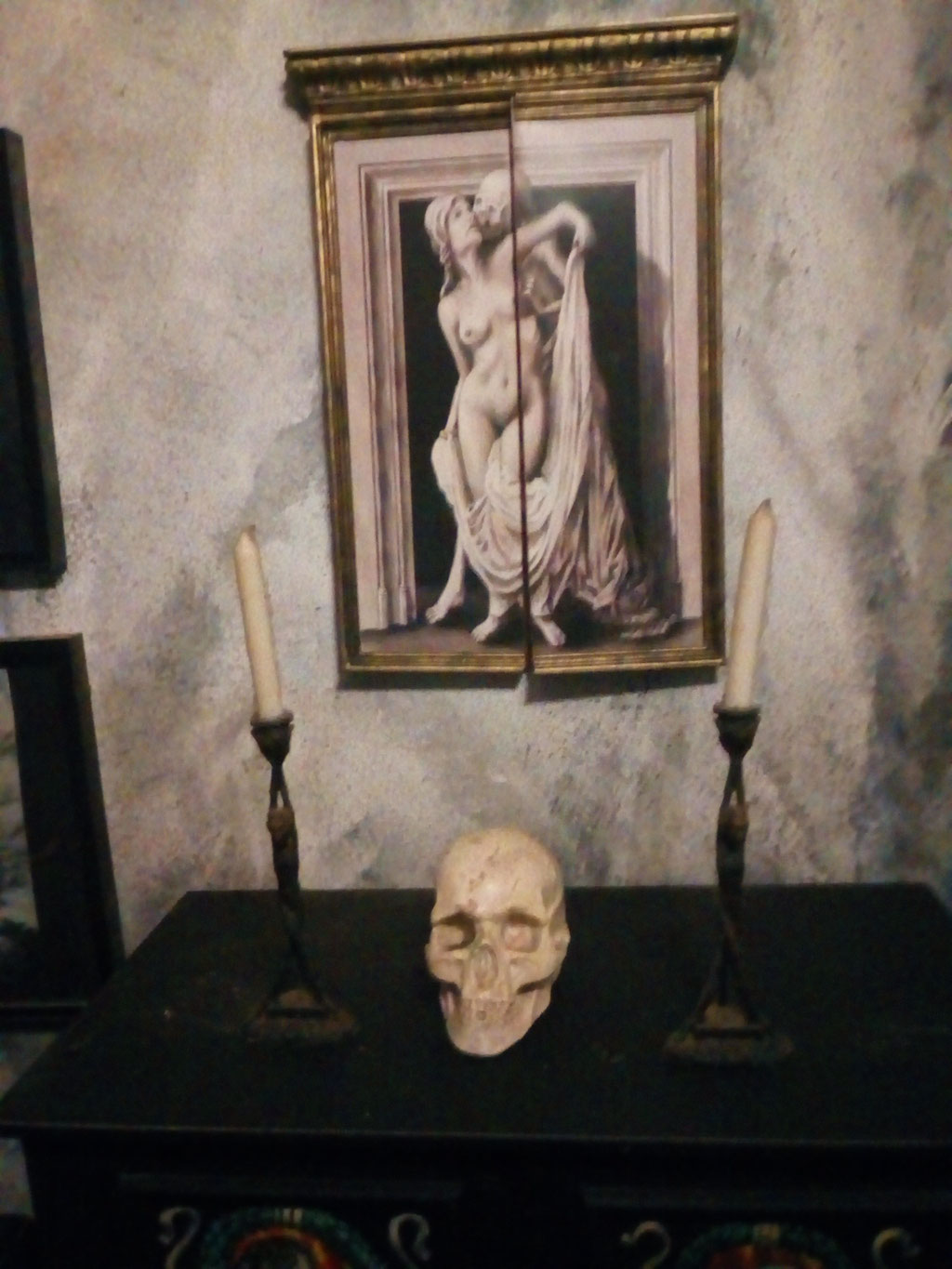 Auf dem Gesimse des gotischen Bogens habe ich dieser Hexe ein steinernes Denkmal gesetzt. Durch die Perspektive musste ich leider die sexy Trippen weglassen, doch das tut ihrer verführerischen Wirkung keinen Abbruch