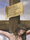 So tritt "Iustina Nazarena Regina Innocentum" (Justine, die Nazarenerin, Königin der Unschuldigen" an die Stelle von "Iesus Nazarenus Rex Iudaeorum"