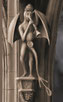 Der Engel hat es nicht auf mein Bild geschafft, aber der Teufel hat im Gesimse der gotischen Bögen seinen Platz gefunden und spielt der traurigen Justine das Lied von den Freuden der Sünde.